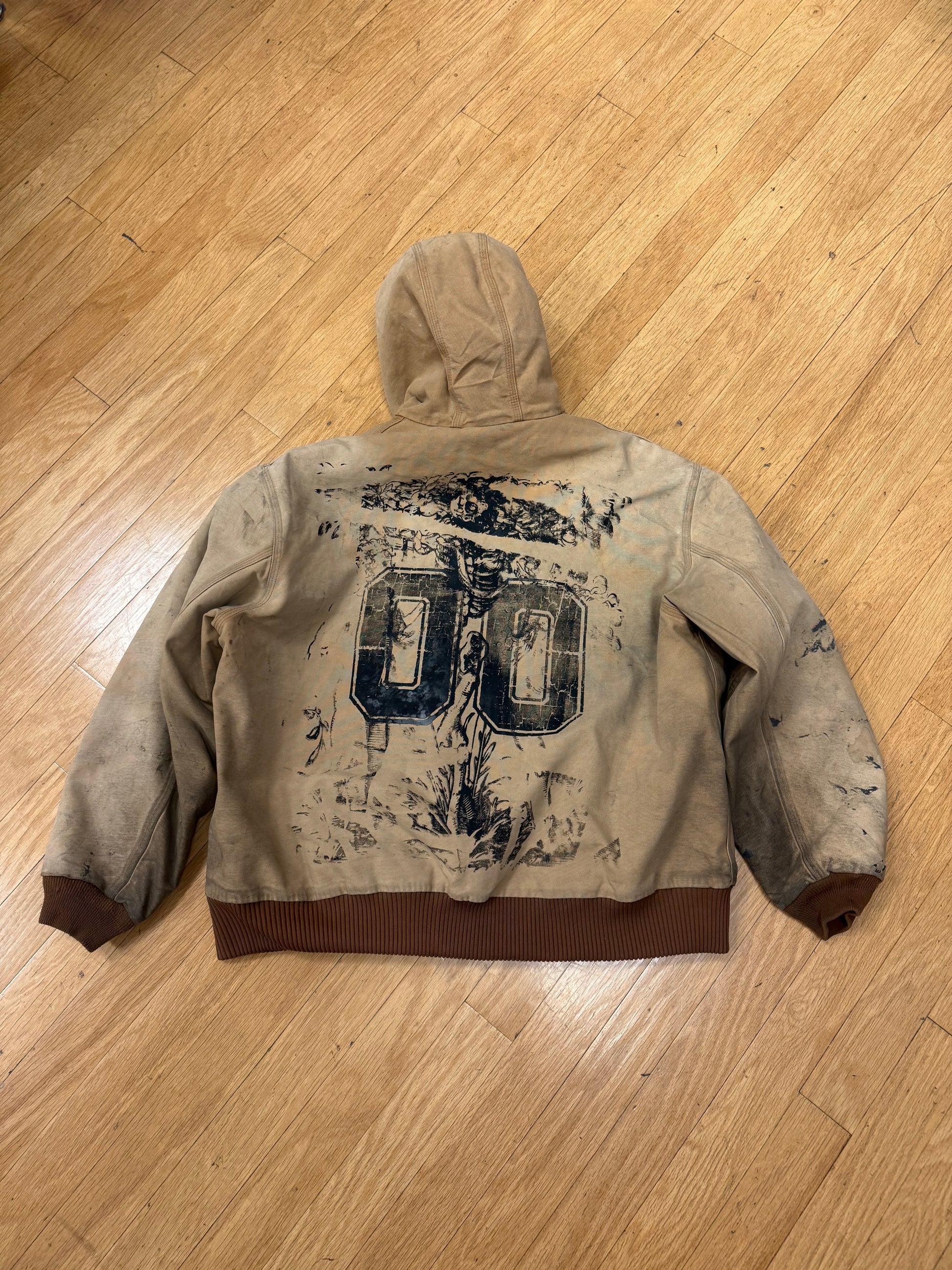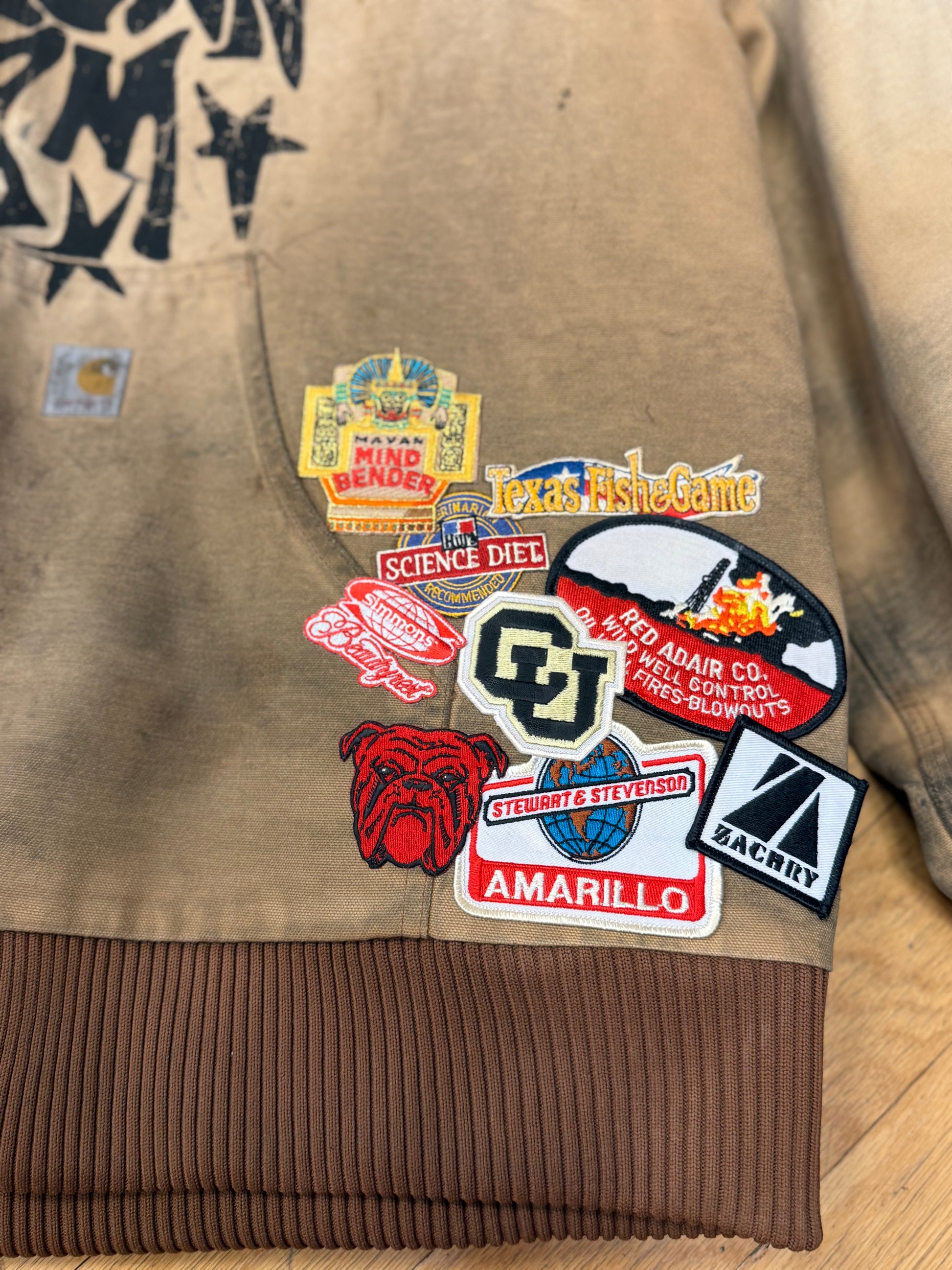 The 1 of 1 Carhartt item is a unique, upcycled product that stands out due to its singularity. Each piece is crafted from previously used materials, reducing waste and promoting sustainability. This design not only offers a distinctive look but also contributes to environmental conservation efforts.