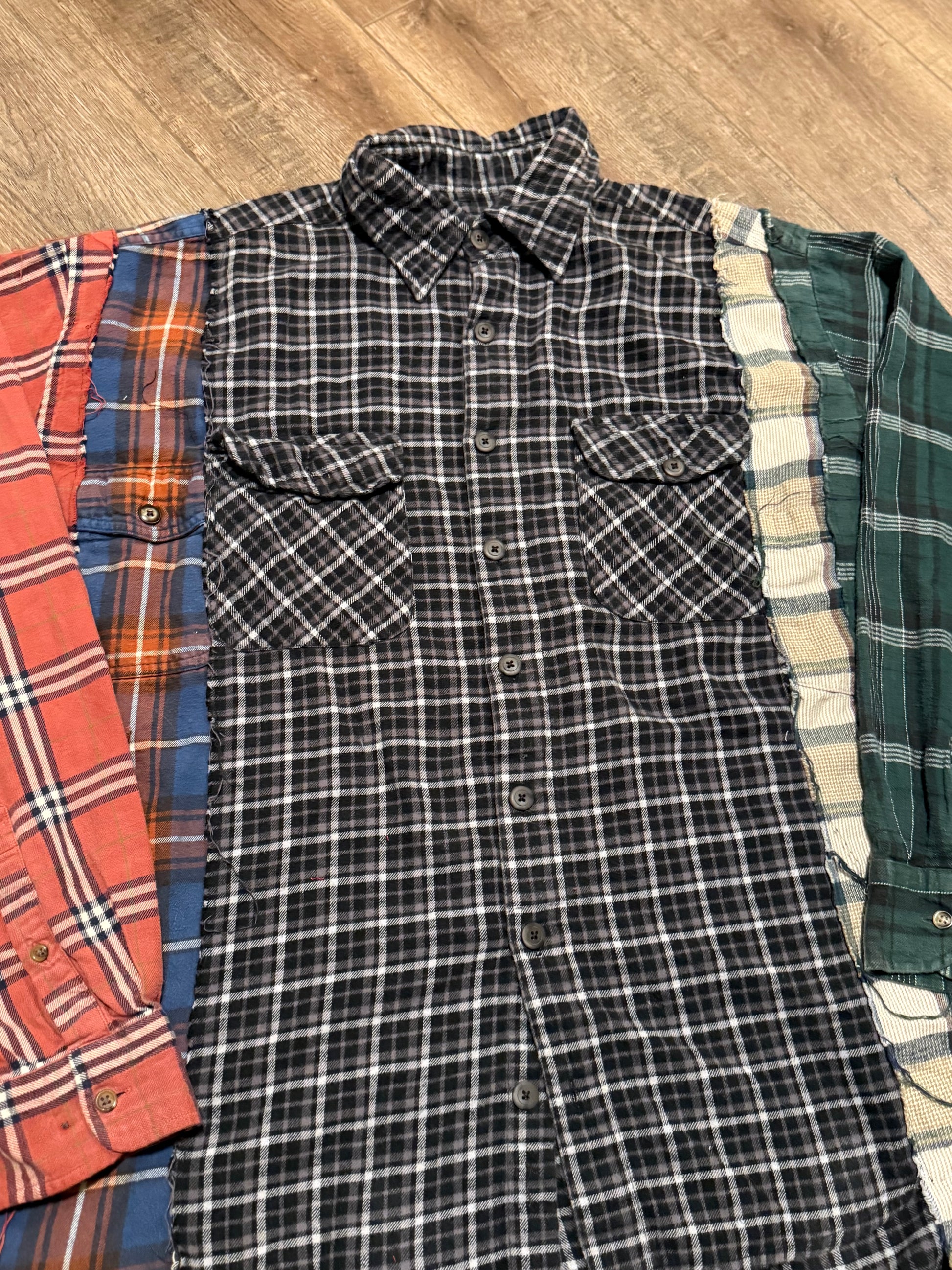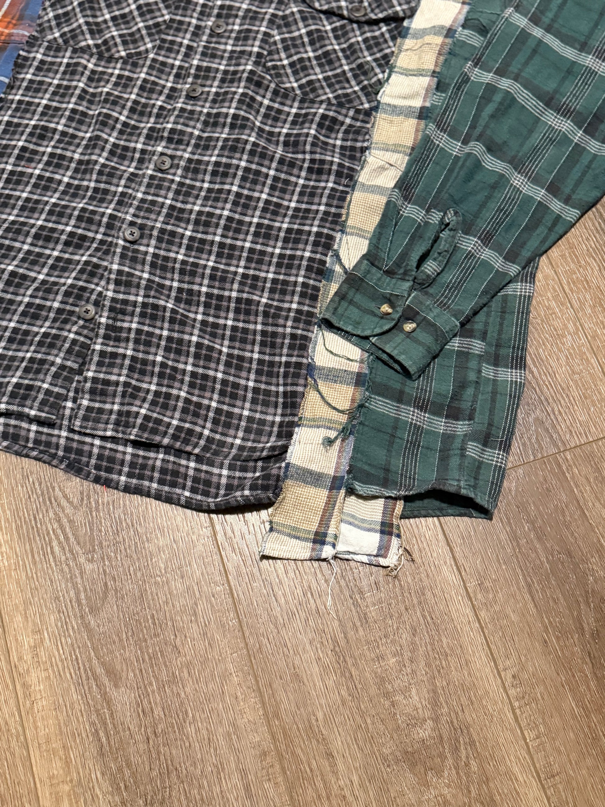 This 1 of 1 upcycled flannel is a sustainable and environmentally conscious choice. Made from repurposed materials, it offers a unique and one-of-a-kind style. A perfect addition to any wardrobe for those looking to reduce their carbon footprint.