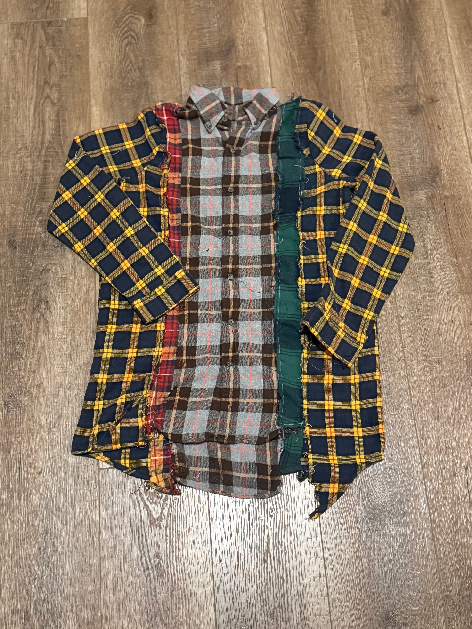 Upgrade your winter wardrobe with our 1 of 1 flannel. Made from upcycled materials, each piece is unique and environmentally sustainable. Stay stylish and eco-friendly with this one-of-a-kind flannel.