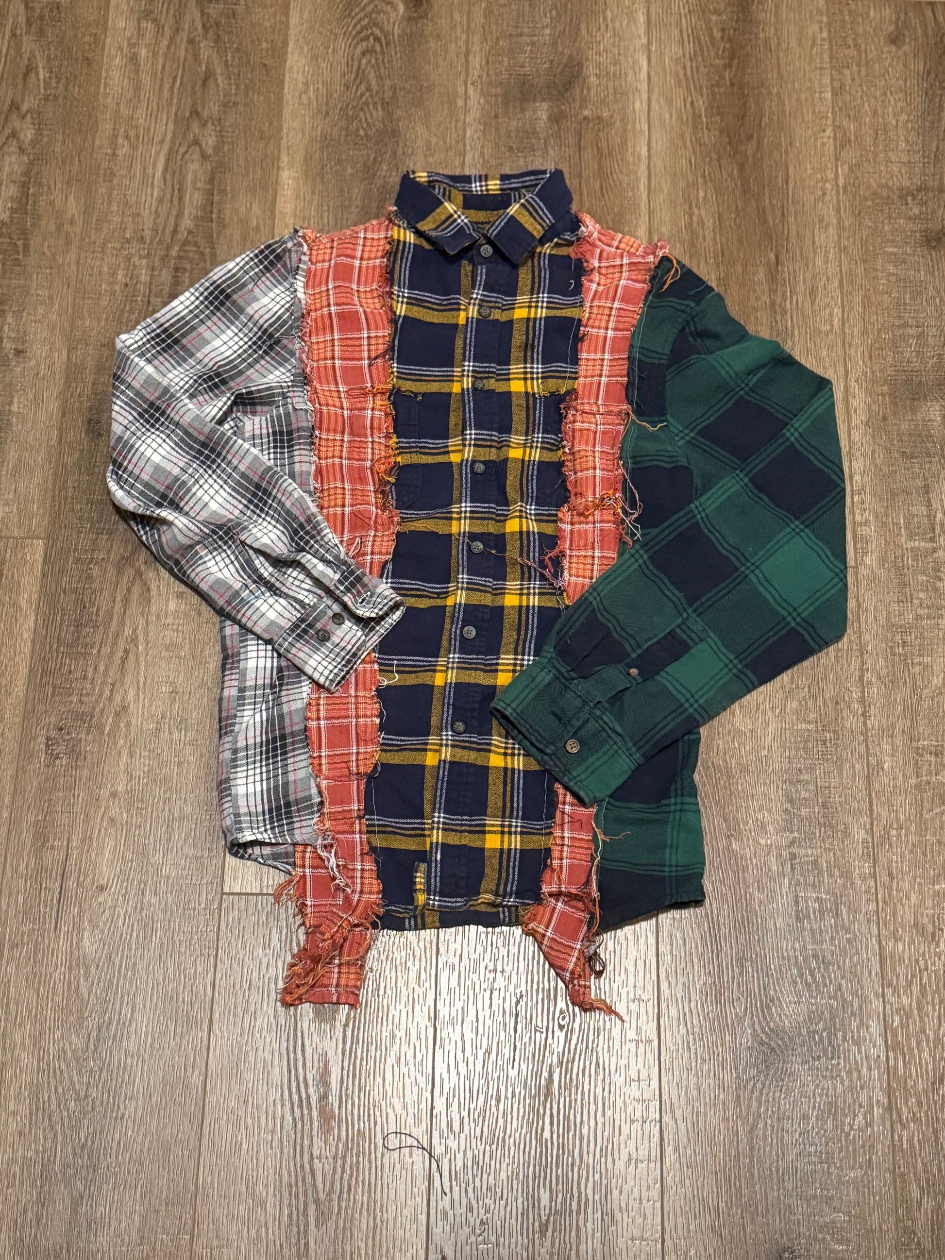 This 1 of 1 flannel is made with upcycled materials, reducing waste and promoting sustainability. Crafted with care and attention to detail, it offers a unique and eco-friendly addition to any wardrobe. Join the movement towards a more conscious and responsible fashion industry with this one-of-a-kind flannel.