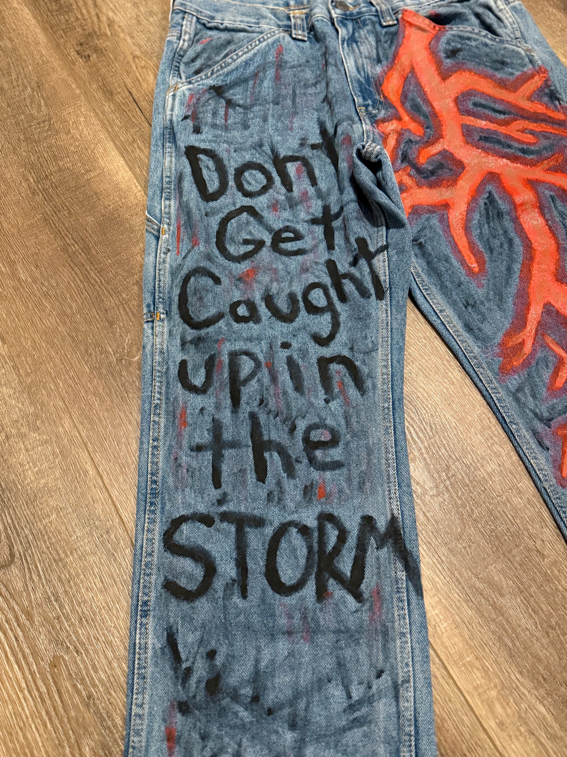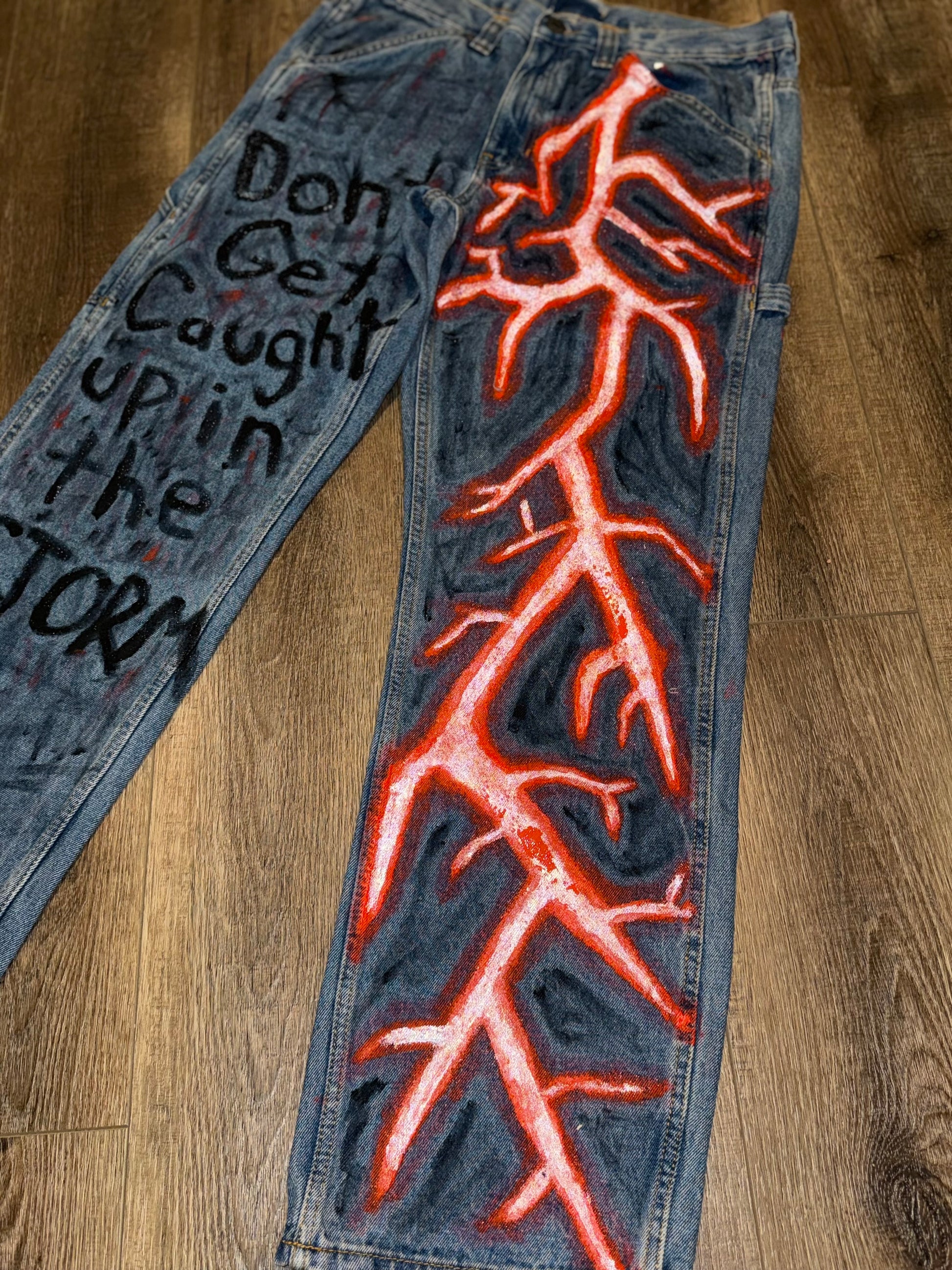 Introducing the 1 of 1 Reflective Bolt Pants, designed with a striking lightning bolt pattern. Showcase your unique style with these eye-catching pants. Available now.