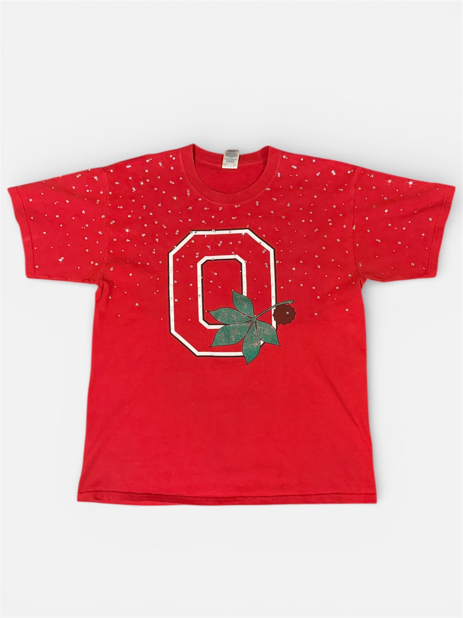 This Ohio State T-Shirt features a unique rhinestone design, showcasing your school pride. Made with high-quality materials, it offers comfort and durability. Show your support for Ohio State with this one-of-a-kind t-shirt.